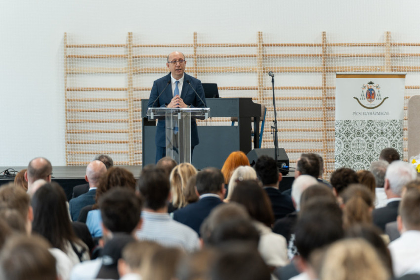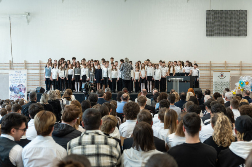 Koósz Roland, a Pécsi Egyházmegyei Hivatal oktatási irodavezetője, aki korábban a paksi katolikus iskola igazgatója volt, köszöntőjében a 33 évesen „krisztusi korba” lépett intézmény elmúlt évtizedekben elért eredményeit méltatta. Mint fogalmazott: ezekben az alapítók hite és bátor akarata, valamint a dolgozók alázata, szakmai tudása és embersége ölt testet.