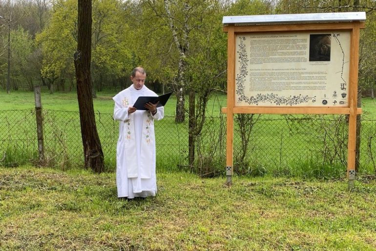A Pálos agapé elején Németh Kornélné polgármester köszöntötte a megjelenteket, majd Györfi Szabolcs pálos szerzetes megáldotta a tanösvényt.