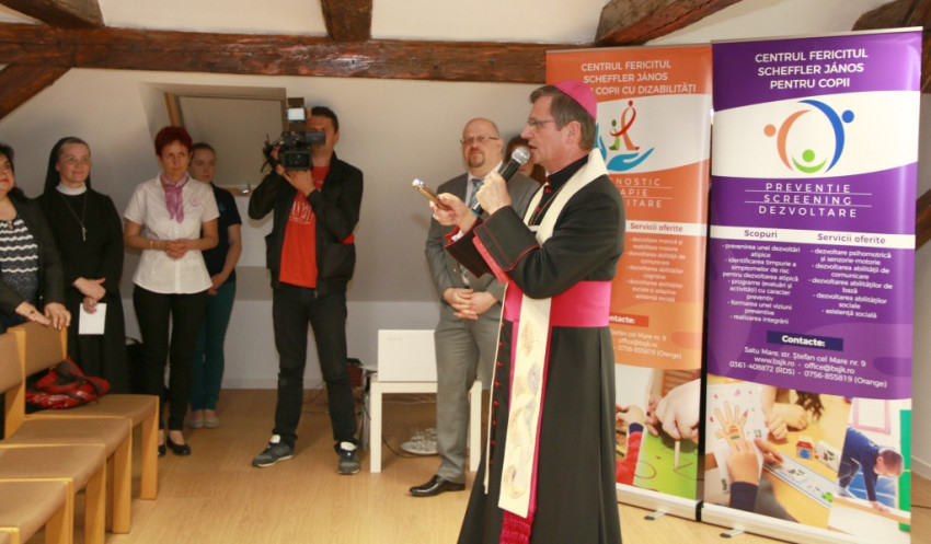 Schönberger Jenő szatmári megyéspüspök emlékeztetett, hogy az épület és a Boldog Scheffler János Központ is Krisztusé. A főpásztor elmondta: szerette volna, hogy a Páli Szent Vincéről Nevezett Szatmári Irgalmas Nővéreknek „legyen új kezdete”, és a Boldog Scheffler János Központon keresztül mindez megvalósulhat. „Hiszem azt, hogy Isten megtette a magáét. Ezért vezetett hozzánk olyan embereket, vagy minket hozzájuk, akik segítségével a felújítást megvalósíthattuk. A mi részünket azonban nem fogja helyettünk más megtenni. Szívvel, lélekkel dolgozzunk!” – buzdított.