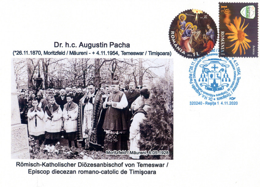 1923. március 12-én a Csanádi Egyházmegye Romániához csatolt részének apostoli kormányzójává nevezték ki; 1927. május 27-én – a korábbi címek és kötelezettségek megtartása mellett – lebedói címzetes püspökké szentelték. 1930. október 16-án Augustin Pacha lett az újonnan létrehozott Temesvári Egyházmegye első püspöke.