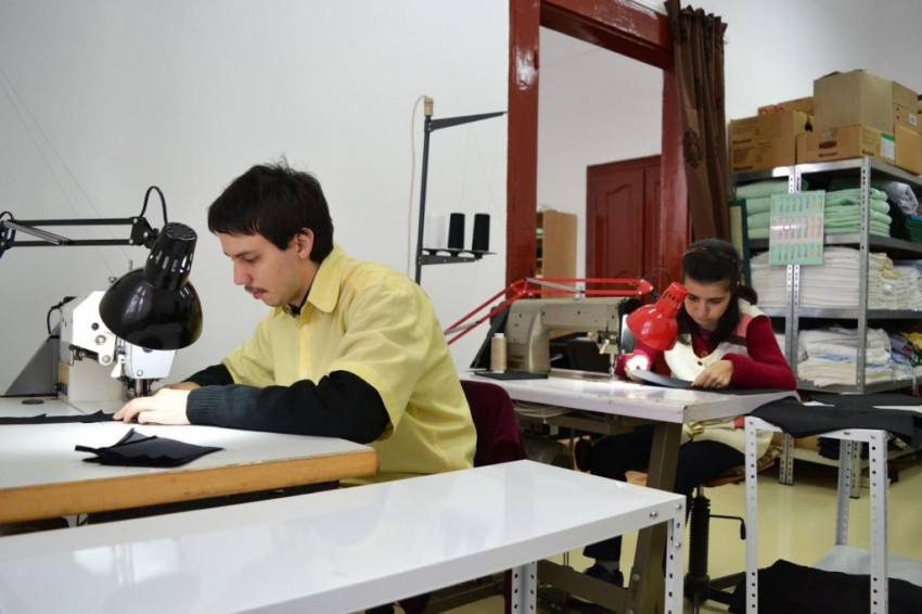 A civil szervezet foglalkozásaira rendszeresen járó két autizmussal élő fiatalt ügyességüknek és tehetségüknek köszönhetően sikerült a műhelyben foglalkoztatni: szövetnadrághoz készítenek zsebeket, illetve csomagolják a koptatókat.