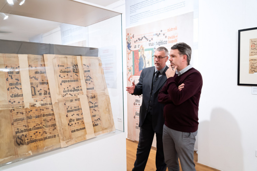 A Győrben őrzött két antifonálé-töredék hiányzó pergamen lapjait a 16–17. században hivatalos iratok és könyvek kötésére használták fel. A kutatók mára 63 töredéket tudtak azonosítani különböző dokumentumokon, amelyek többségét lefejtették az őrzőkönyvükről. Ezek mindegyike megtekinthető a kiállításon eredeti vagy digitális formában.