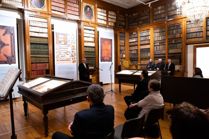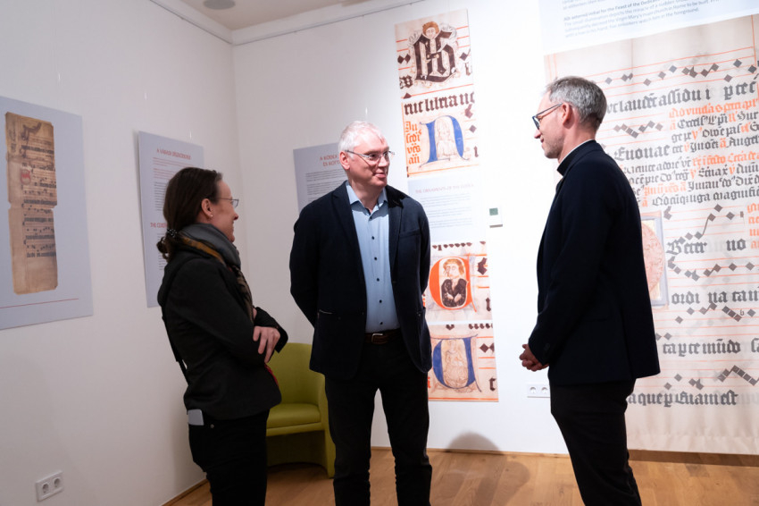 A megnyitón jelenlévőket Veres András győri megyéspüspök köszöntötte. Kiemelte, hogy a Győri Egyházmegye számos kiállítása között jelen tárlat egészen sajátos, unikális értéket mutat be. Az egyházművészeti alkotásokon keresztül az ember a leginkább ki tudja fejezni Isten iránti szeretetét, imádatát. A főpásztor arra hívott, hogy a kiállításon bemutatott énekeskönyvek (antifonálék) ékes kottái, betűinek szépsége irányítsa figyelmünket és lelkesítsen a nagyböjti időben, hogy emelkedett szívvel tudjuk imádni Istent és tisztelni embertársainkat.