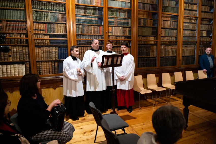 Az ünnepségen a Collegium Musicum Jaurinense előadásban az antifonálé első sorát adó Aves spes nostra, a Hesterna die responzorium Szent István zsolozsmájából és Asola Bonum est confiteri motettája csendült fel.