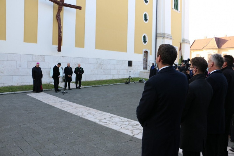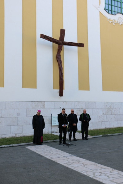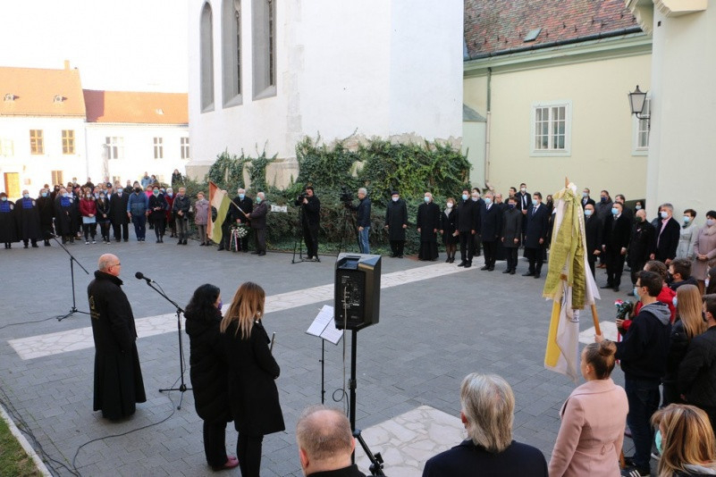 A bazilika oldalánál álló emlékkeresztnél a hősök tiszteletére tartott ünnepség Baráth Eszter szavalatával kezdődött, aki Jobbágy Károly A rádió mellett című versét adta elő. Az ökumenikus imádság keretében a történelmi egyházak képviselői imádkoztak a hősökért, az áldozatokért, népünkért.