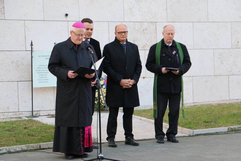 „Mindenható örök Isten, a történelem Ura, bizalommal fordulunk Hozzád imánkkal, hogy az 1956-os forradalom hőseiért és áldozataiért könyörögjünk. Te láttad küzdelmüket, hősiességüket, hazaszeretetüket és szenvedéseiket. Jutalmazd meg őket el nem múló országodban az igazak győzelmével, adj megnyugvást nekik az örök békesség honában. Isteni megváltónk, Jézus Krisztus, Te így tanítottál minket: nagyobb szeretete senkinek sincs annál, mint aki életét adja barátaiért. Akikért most imádkozunk, szerették hazájukat és családjukat, és őértük adták életüket. Tekints rájuk kegyesen, és részesítsd őket kereszthalálod titka által a feltámadás dicsőségében. Nekünk pedig add, hogy Istenbe vetett hittel, magyar hazánkat odaadóan és önfeláldozóan szolgáljuk, családjainkat hűséges szívvel szeressük. Add, hogy a hősök és áldozatok áldott emlékéből a komoly kötelességteljesítés, a hősies áldozathozatal lelkülete áradjon ránk. Adj csüggedés nélküli szívet a jóért való küzdelemben, hogy magyar hazánkért mindent megtegyünk, törvényeid és tanításod szerint éljünk dicsőségedre és embertársaink javára!”