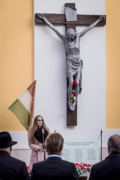 Az ünnep szónoka idén Demeter Zsófia történész volt, aki az országos és a budapesti eseményekkel párhuzamosan az ’56-os fehérvári történéseket, helyszíneket, szereplőket idézte fel. Beszédében felelevenítette a történelmi eseményeket a II. világháború után kialakult hidegháborús helyzettől kezdve a forradalmi eseményeken át egészen az ellenállás megszűnéséig.