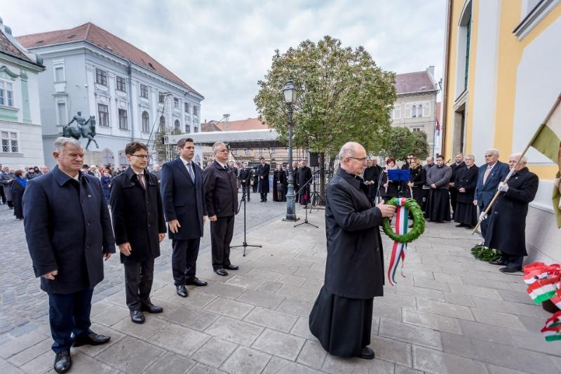 Az ünnepi beszéd után Spányi Antal püspök imádságban könyörgött azokért, akik életüket adták hazánk szabadságáért és azért, hogy példájuk nyomán az utódok kitartsanak a jóért való küzdelemben, embertársaik javára. Együtt fohászkodtak az 1956-os forradalom és szabadságharc áldozataiért a történelmi egyházak képviselői is, Bencze András püspökhelyettes, evangélikus lelkész és Ludvigné Izsay Szilvia beosztott lelkész. Végül Kovács Dániel baptista lelkipásztor imádkozott azért, hogy ’56 példájából az utódok tanuljanak és merítsenek erőt a mai vezetők; a hívő emberek összefogva imádkozzanak és böjtöljenek hazánk jövőjéért, a békéért.