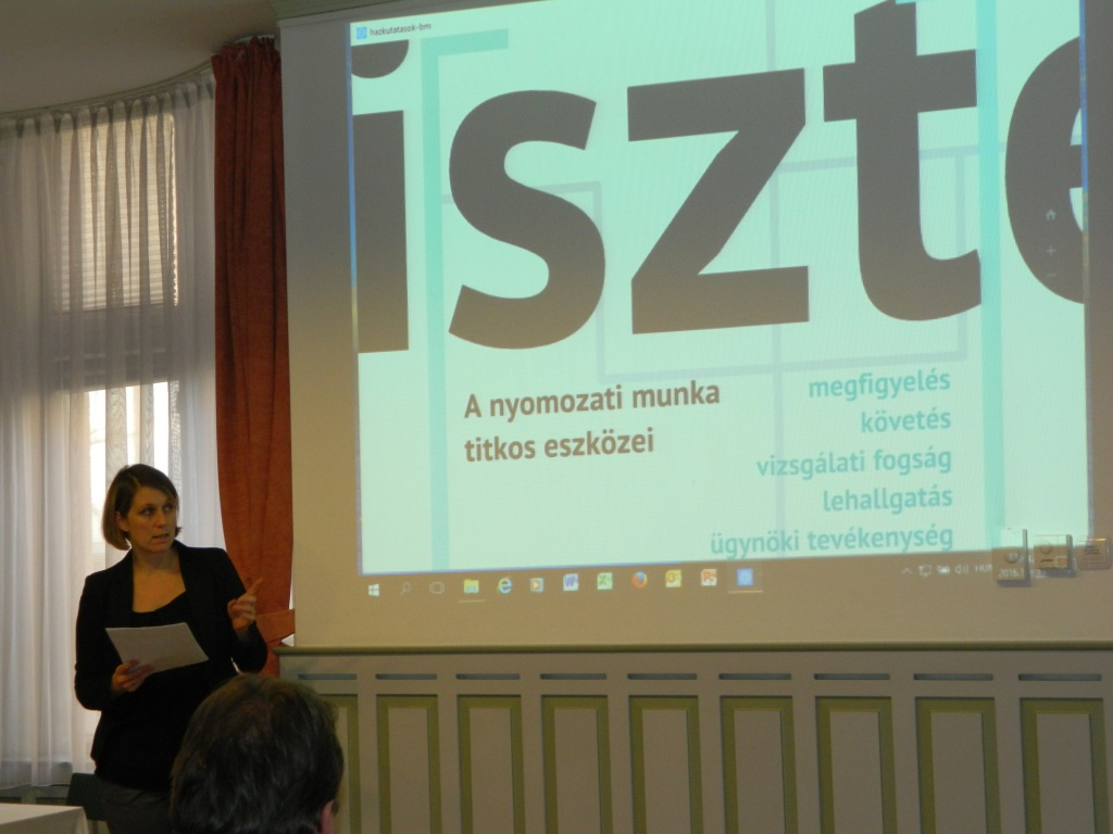 Wirthné Diera Bernadett, a Nemzeti Emlékezet Bizottság Hivatalának kutatója Az 1961-es házkutatások belügyminisztériumi háttere című előadásában az ’56-os forradalom és a ’61-es letartóztatási hullám összefüggéseiről beszélt.