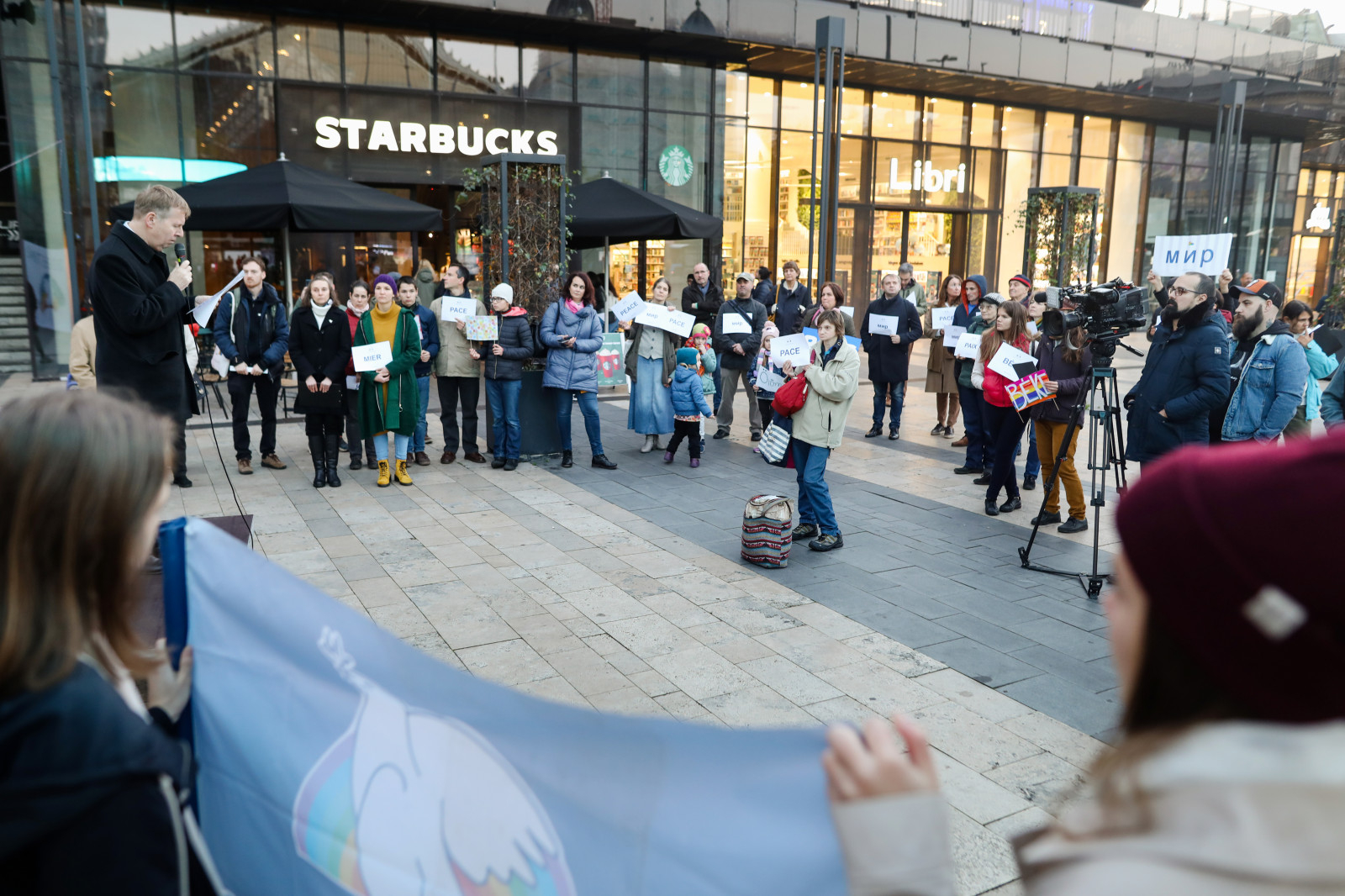 Hartyányi Jaroszlava szerint béke akkor lesz, ha az orosz hadsereg kivonul Ukrajnából. „Ha ez nem történik meg, akkor folytatódik az a népirtás, ami jelenleg is folyik az országban” – fogalmazott. „Tudom, hogy a magyar békeszerető nép, kérem, hogy értsék meg az ukrán nép harcát a fennmaradásáért” – tette hozzá a több mint negyven éve hazánkban élő közéleti személyiség.
