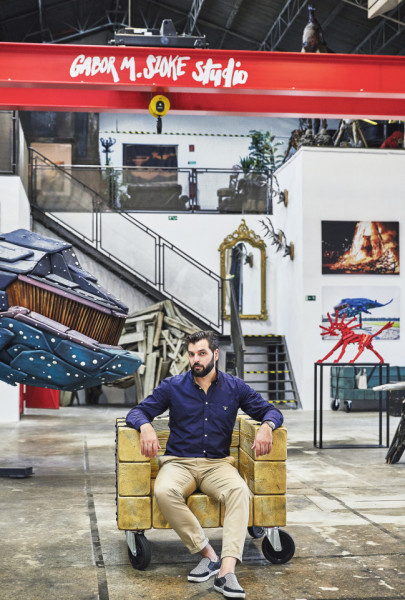 Komoly-komor, mégsem olyan lelketlen falanszter, mint azt gondolhatnánk. A Bronzöntő utca megszakítás nélküli műhelysora már-már kertvárosi bensőségességet, védettséget sugall. A zsákutca elején őrt álló, majd a keskeny közben haladva mind sűrűbben feltűnő állatszobrok világosan jelzik: ez már a Gabor M Szoke Studio „dantés” fantasyvilágának vonzásköre. Nem meglepő, hogy az „emblémás” csarnok minden szöglete fantáziáról, leleményről tanúskodik. Kezdve onnan, hogy a pirosra festett, nehéz vasajtót áthasító acélkarom a gombkilincs… Az ipari műemléknek beillő, tekintélyes, ugyanakkor kortárs szertelenséget sugárzó műteremben, a csarnoktér fölé könyöklő galéria teljes belátást nyújtó, üvegfalú tárgyalójában ültünk le beszélgetni Szőke Gábor Miklóssal. A mára világhírűvé vált fiatal szobrász szinte minden elhangzó gondolatát illusztrálja ez az eklektikusan berendezett, osztott élet- és munkatér, ahol jól megfér az antik kínai lakkszekrény az itt elhelyezett tanulókori alkotásokkal, klasszikus darabok a saját tervezésű bútorokkal. Ez az izgalmas közeg már önmagában sok mindent feltár a művészi műhelytitkokból. A találkozó célja pedig nem kevesebb volt, mint egy rövid, ugyanakkor átfogó pályakép felvázolása.