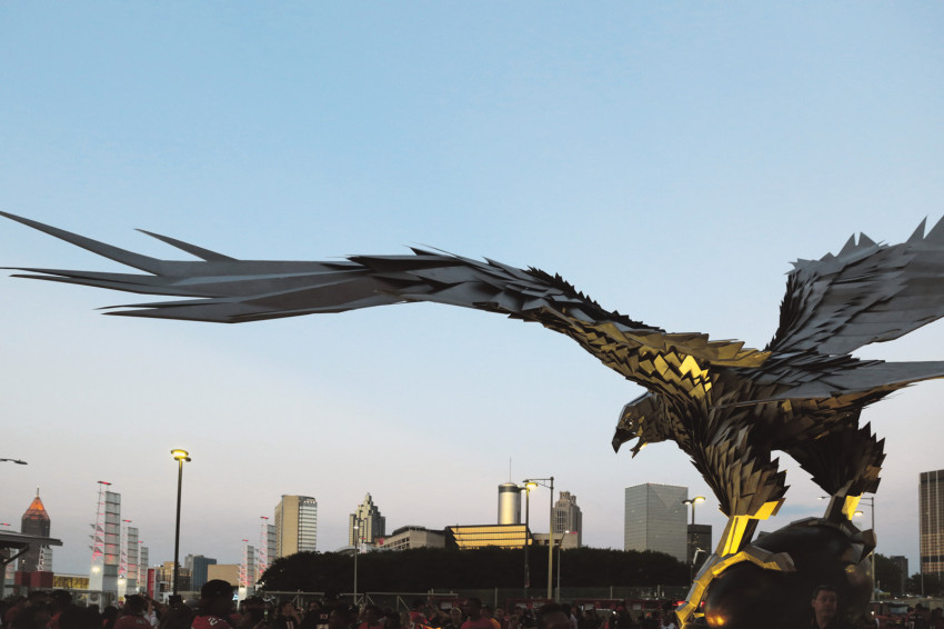 Atlanta egyik legforgalmasabb helyére, a Mercedes-Benz Stadion, a CNN és a Coca-Cola Company központjának háromszögébe került a sólyom. A madár előtt egy méretes tábla „kulturális nagykövetként” hirdeti, hogy a szobor Magyarországról érkezett, Budapesten készítette Gábor Miklós Szőke… Idén sikerült kijutnunk a Super Bowlra, így most láttuk teljes pompájában. Alatta embertömegek, a közvetítésekben szerepel, minden szünetben megjelent a világ jelenlegi legnagyobb kivetítőpaneljén. Hatalmas élmény és büszkeség, de szerintem nemcsak nekem, hanem egész Magyarországnak.