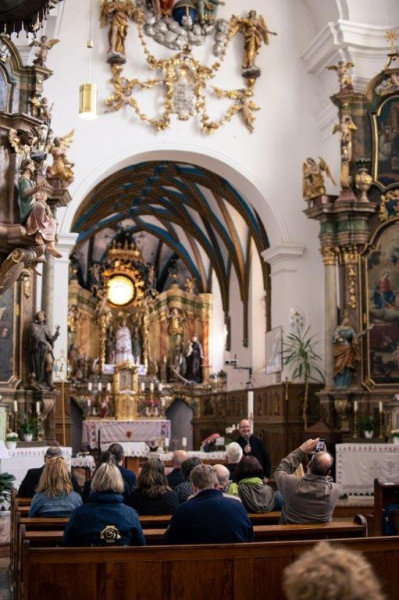 Nyéky Kálmán, az andocsi bazilika plébánosa örömmel fogadta a fehérvári zarándokokat. Beavatta őket a búcsújáróhely történetébe ,és alapos ismeretek birtokában, nagy büszkeséggel mutatta be a templom ékességeit.