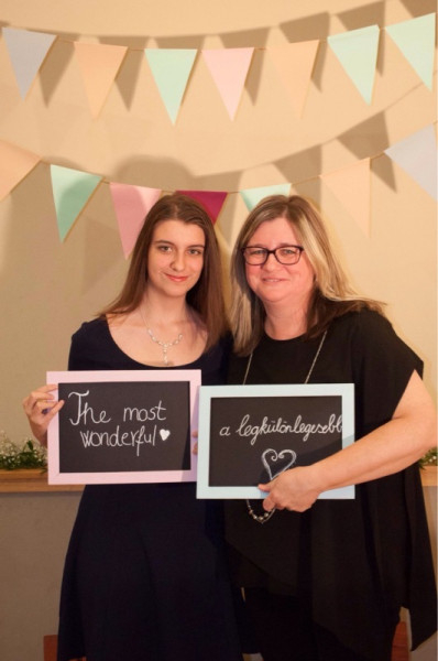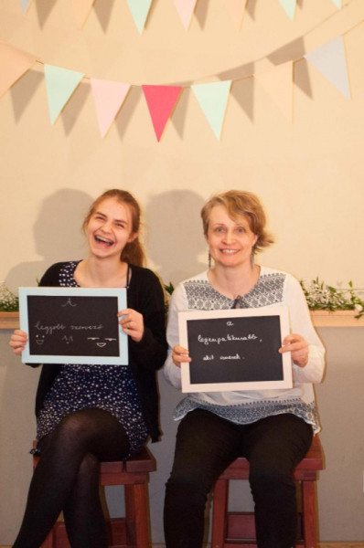A műhelymunka után az anya-lánya párok krétatáblára írták fel, mit értékelnek a másikban, majd erről hangulatos képek is készültek.