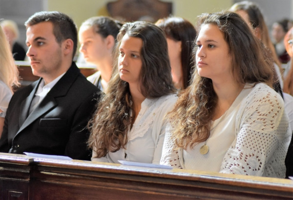 Ezután került sor az ünnepélyes fogadalomtételre: a diákok hűségükre, a katolikus értékek megtartására, a hivatásukra való lelkiismeretes felkészülésre tettek ígéretet, majd a rektor egyenként üdvözölte az elsőéves hallgatókat.