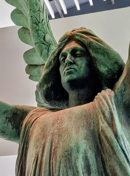 Eljött a restaurálás ideje, ezért Gábriel arkangyal szobrát leemelték az oszlopról, és műhelybe szállították, ahol gondos, szakértő kezek felújítják. Hogy a város népe addig se maradjon arkangyal nélkül, elkészítették e páratlan alkotás pontos másolatát, amit most a Néprajzi Múzeum kiállításán nézhetünk meg.