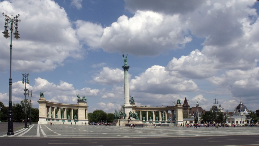 Egy fotón Budapest látképe tárul elénk a kiállításon, úgy, ahogyan az az arkangyal szemével látható, harminchat méter magasból, a millenniumi oszlop tetejéről nézve. Szellemes ötlet a rendezők részéről, hogy a panorámaképen ebből a különleges perspektívából pillanthatunk rá a városra, az Andrássy útra és környékére.