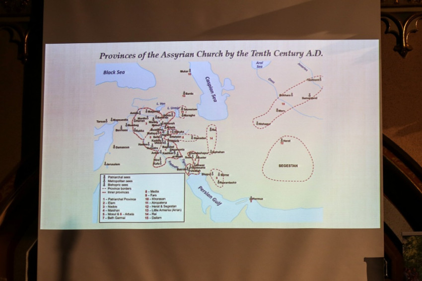 Mar Abrisz Juhana püspök történelmi áttekintést adott az asszír keleti egyházról a kezdetektől napjainkig. Eredete egészen a Krisztus előtti első századig, az apostoli időkig vezethető vissza. Az első pünkösdkor, a Krisztus mennybemenetelét követő ötvenedik napon, amikor a Szentlélek szétáradt a világban, asszírok is voltak Jeruzsálemben a háromezer megtérő között. Az erbíli nesztoriánus püspök emlékeztetett rá, hogy az Asszír Birodalom Kr. e. 612-ben megbukott, és ekkor sok asszír menekült Mezopotámiába. Arám nyelven beszéltek, vagyis azon a nyelven, mint maga Krisztus is. Abrisz Juhana kitért arra is, hogy a Krisztus után 7 és 50 között uralkodó V. (Fekete) Abgar edesszai király ókori legendák szerint Jézussal levelezett, és Júdás Tádé keresztelte meg. Abgar gyógyíthatatlan betegségben szenvedett, amikor tudomást szerzett Jézus csodáiról, gyógyításairól. Levelet írt Krisztusnak, amiben a segítségét kérte, és menedéket ajánlott fel neki. A legenda szerint Jézus válaszolt a király levelére, és maga helyett egyik tanítványát küldte el az uralkodóhoz, aki meggyógyította. Eusebius püspök, a Krisztus utáni 4. században élt egyházatya azt állította, hogy az edesszai királyi őslevéltárban megtalálta V. Abgar Jézussal folytatott levelezését, és e levelekből néhányat Jézus válaszával együtt szó szerint közölt történeti munkájában. A levelek másolata Rómába került, ahol I. Gelasius pápa 491-ben hamisnak, apokrifnek nyilvánította a leveleket. A legenda szerint Abgar király egyik, Jézushoz küldött hírvivője lefestette Krisztust, ez az ún. Edesszai Szent Kép, az asszír egyház egyetlen képe, mert egyébként nincsenek ábrázolások a templomaikban, csak egyszerű keresztek láthatók – mondta a főpásztor. Az asszíriai keresztényeket a szasszanidák uralma alatt üldözték, ennek ellenére az egyház virágzott, s már a Krisztus utáni első évszázadban elterjedt Észak-Arábiában, Tamás apostol jóvoltából Indiában is, a harmadik századra pedig a Perzsa Birodalom egész területén hirdették az Igét, és jó viszonyt ápoltak az antiochiai keresztény közösséggel is. Az erbíli püspök kitért arra, hogy a nesztorianizmus alapítóját, Nesztorioszt (381–451) az efezusi zsinat 431-ben eretnekként elítélte.