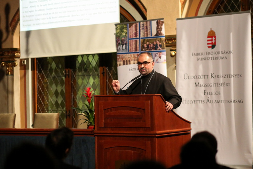 A vendégeket Fodor György prorektor, dékán és Balog Zoltán, az emberi erőforrások minisztere köszöntötte. Fodor György a Pázmány Péter Katolikus Egyetem kötelességének nevezte, hogy helyt adjon a keresztények üldözését bemutató konferenciáknak – ez a mai már tizenkettedik a sorban. Balog Zoltán arról beszélt, hogy a kormány számára egyre nyilvánvalóbb: ha nem őrizzük és erősítjük meg Európa keresztény alapjait, veszélybe kerül a kontinens, és benne Magyarország jövője is. A kabinet nemet mond a migrációra, de ez nem jelent érzéketlenséget; a kormányzat segíti az üldözéstől szenvedőket a szülőföldjükön, mert meggyőződése szerint erre ott, helyben van szükség. Az Emmi vezetőjének szavaiból kiderült, hogy hazánk több száz millió forinttal támogat iraki, szíriai kórházakat, iskolákat, segíti az Iszlám Állam (ISIS) által lerombolt templomok újjáépítését. Az ösztöndíjprogram keretében üldözött keresztények tanulhatnak Magyarországon, számuk eddig kétszáz volt, jövőre remélhetőleg megduplázódik. Balog Zoltán bízik benne, hogy a kereszténység szülőföldjén, ahonnan kétezer évvel ezelőtt kiáradt Jézus Krisztus egyetemes, mindenkire kiterjedő szeretete, beköszönt egyszer a béke.
