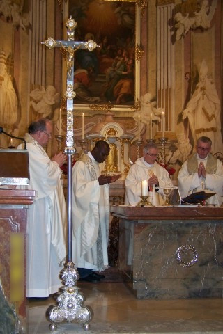 Az Oltáriszentség kitétele után rózsafüzért imádkoztak a templomot mindkét alkalommal megtöltő hívek és a szentélyben helyet foglaló szerzetesek, valamint az ez alkalomra nagy számban érkezett papok.