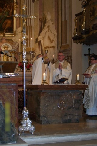 A fatimai nap esti szentmiséjén régi ismerősként vett részt a heiligenkreuzi ciszterci apát, Maximilian Heim O. Cist. is kísérőivel.