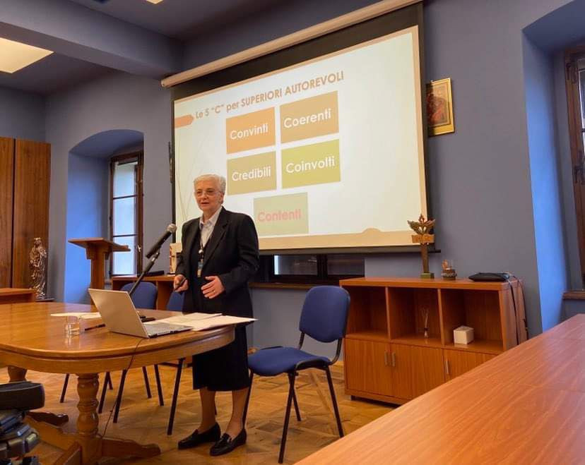 A szerzetesi élet alapértéke, lelkiségtől függetlenül az állandó megtérés. A szüntelen megtérés révén újra kalibrálhatjuk az időérzékünket is, a prioritásaink átrendezése révén. Az előadó nővér alapítójukat, Boldog Giacomo Alberionét idézve a megtérés akadályairól is beszélt: a kíváncsiságról, a sietségről, valamint a büszkeségről és makacsságról. Nem könnyű vállalkozás a mai kulturális miliőben élő és felnövekvő szerzetesek számára elöljáróként szolgálni, de egy szép önismereti útra vállalkozhatnak, azon az ötös sávon, amelyet 5C-ként tarthatunk számon (olaszul: convinti, coinvolti, credibili, contenti, coerenti): a meggyőző, a bevont, a hiteles, a tartalmas, a koherens élet sávjain.