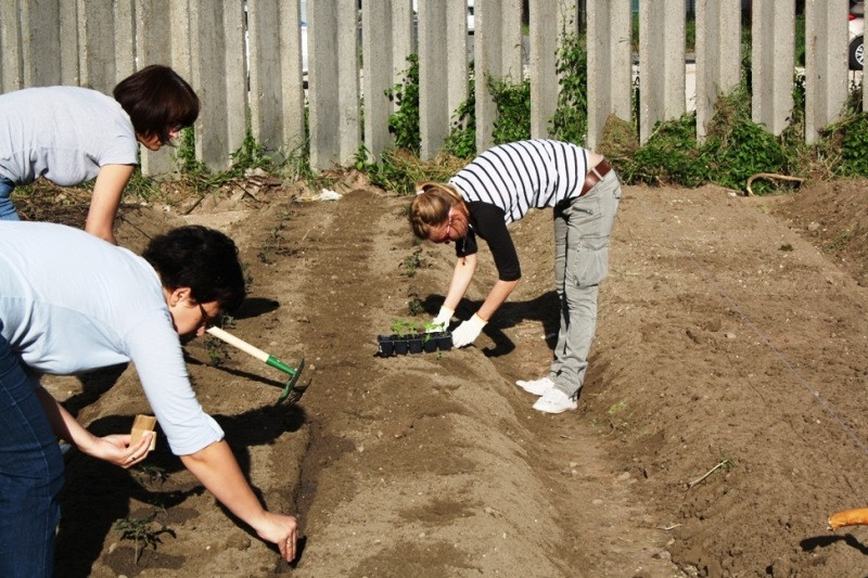 A munkálatokba a ház néhány lakója is bekapcsolódott. Az épület mellett létrejött kertben nyolc parcellát alakítottak ki és vetettek be. A cél a terület gondozása, az alapvető élelmiszerek megtermelése (segítve ezáltal a házban lakók megélhetését), valamit a közösségi és kerti munka megszerettetése, a kertészkedés megtanítása, a lakókörnyezet rendben tartása.