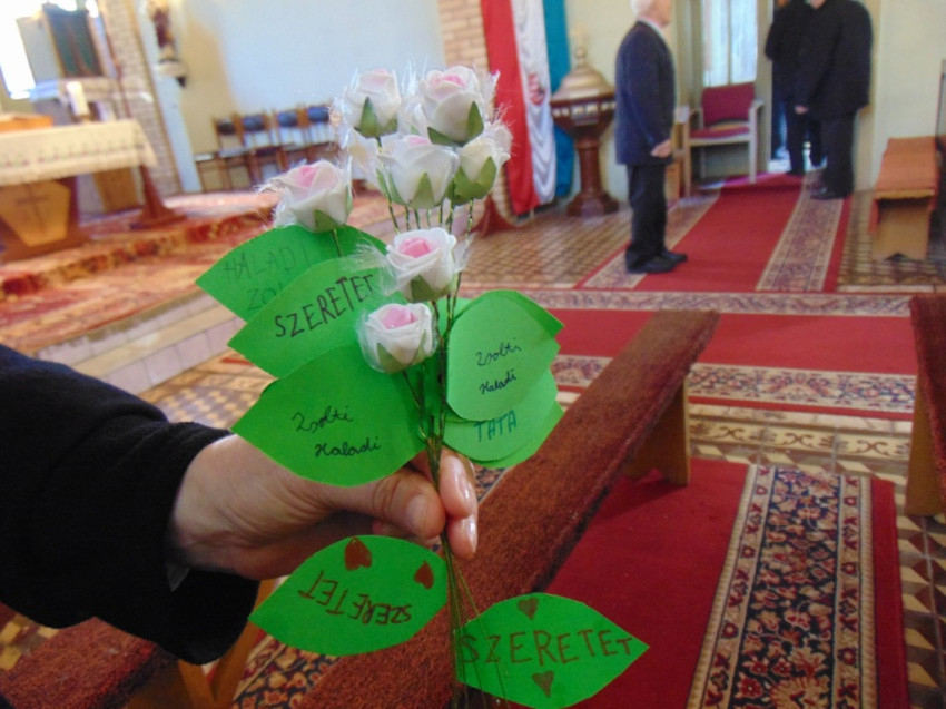 A családos közösség tagjai meglepetést készítettek az édesapáknak. A szentmise végén minden jelen lévő gyermek kijött az oltárhoz, és felemelték a „Szeretlek, apa!” feliratot. Ezt követően a gyermekek elénekelték az ároni áldást édesapjuknak. Végül minden gyermek egy kis levelet nyújtott át édesapjának, amiben megköszönte neki a sok szeretetet, és kérte továbbra is gondoskodását.