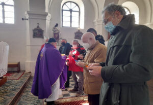 A jelenlévő családfők egy szentképet is kaptak, amelynek hátulján a Szent József-ima olvasható.