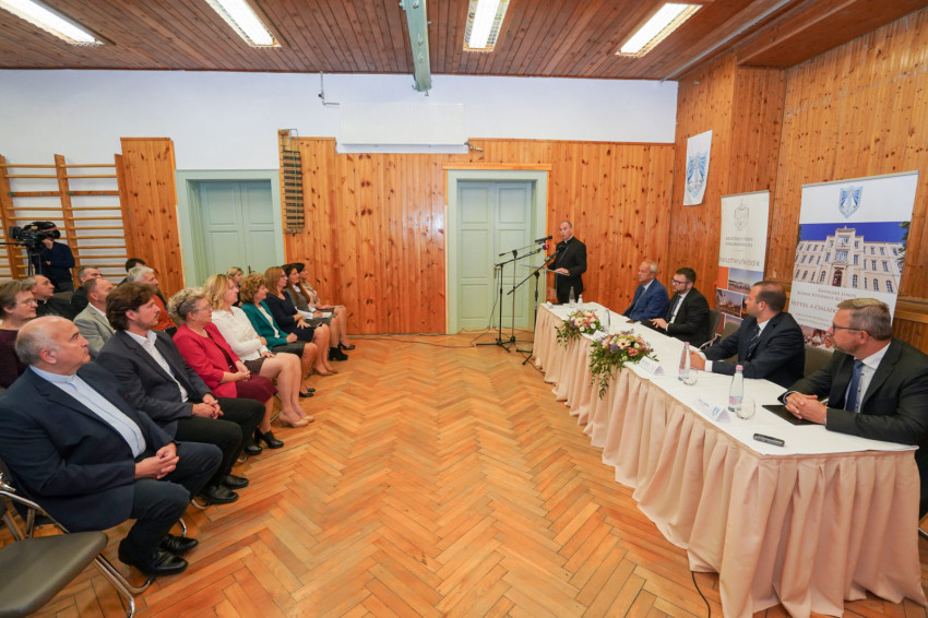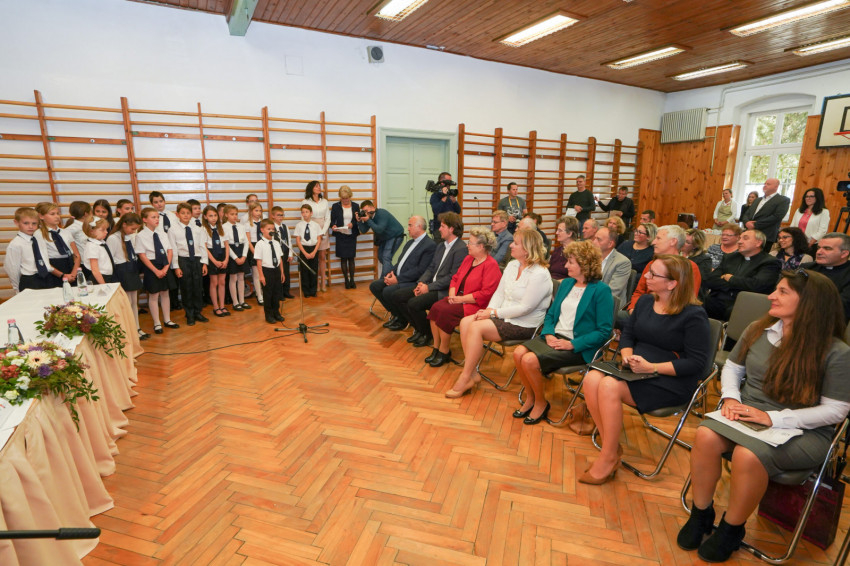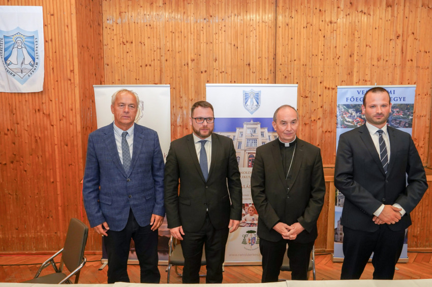 Az iskolában tartott sajtótájékoztatón részt vett Udvardy György veszprémi érsek; Schanda Tamás, az Innovációs és Technológiai Minisztérium parlamenti és stratégiai államtitkára, miniszterhelyettes; Nagy Bálint, Keszthely polgármestere, valamint Manninger Jenő, a térség országgyűlési képviselője.