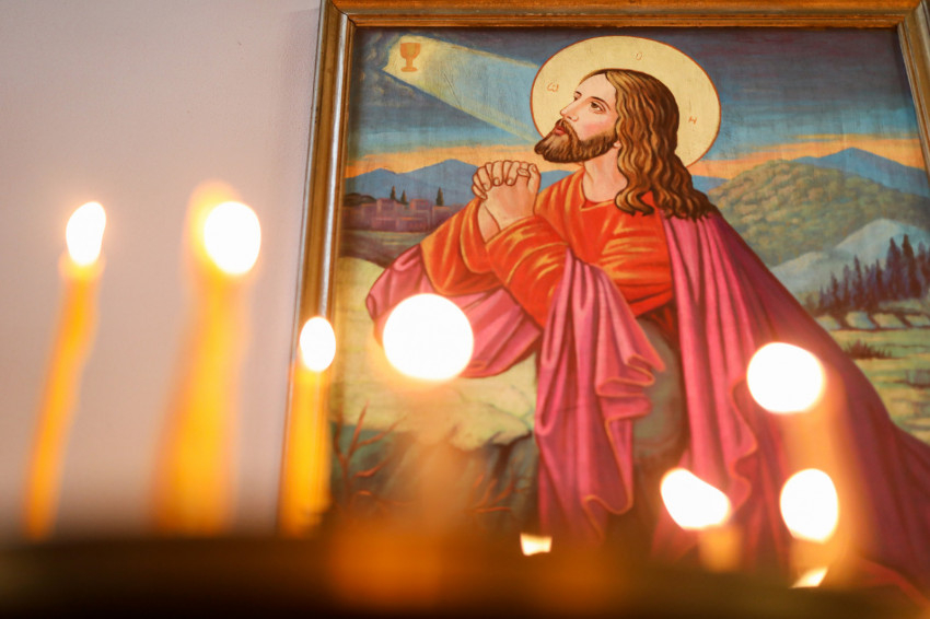 A helyiek segítségével rakodjuk ki a szállítmányt. Van még időnk egy imára a szomszédos ortodox templomban, amely a nagycsütörtöki szertartáson tele van imádkozókkal.
