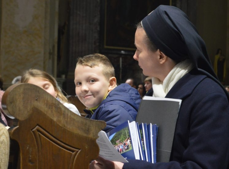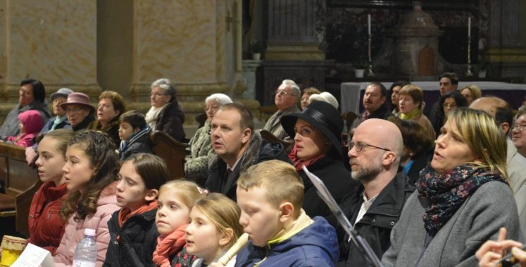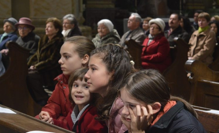 A Schönstatt-családakadémiáról már olvashattunk, most maradjunk ennél az ünnepi, zárópillanatnál. A hét család egy híján húsz gyermeke közül volt, aki gitárt, más bongót vagy furulyát ragadott, és az egyik apuka vezetésével szépen végezték a zenei szolgálatot azon a szentmisén, ahova elkísérték a családokat meghívottjaik is, köztük a plébánosaik. Tisztán látszott, hogy mindenki nagyon készült a szépen megszervezett liturgiára, így lett családiasan ünnepi, alkalomhoz illő és megható momentumokkal. Mert milyen, ha nem megható, vagyis inkább: „szívtisztító”, ahogyan a gyerekek közül a legkisebb fiúk fehér kesztyűcskékben, igazi összeszedettséggel vigyázzák a „püspök bácsi” pásztorbotját, vagy éppen ritmusra billegetik ölükben a püspöksüveget?