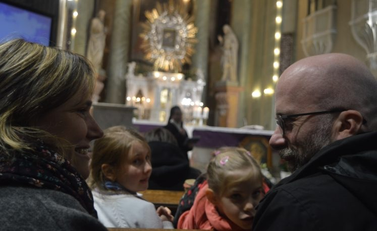 A családbarát főpásztor pedig – vagyis Pál atya, ahogy őt a házaspárok nevezik (hisz püspökké szentelése előtt is részt vett találkozóikon) – a legegyszerűbb és legszemélyesebb gondolatait osztja meg, például a párok bemutatkozójához kapcsolódva. „Fogalmam sem volt két évvel ezelőtt, amikor az akadémia kezdődött, hogy mire jelentkezek” – mondta az egyik férj. Ezt az evangéliumban felolvasott angyali üdvözlettel hozta összefüggésbe a püspök: Máriának fogalma sem volt arról, mi hogyan fog történni. De nyitott szíve volt a kegyelemre, és nem beletörődésből, sokkal inkább bizakodva mondta ki igenjét. Ugyanakkor, jobb kérdezni – ahogy Mária tette (hogyan lehetséges?) –, mint hárítva magyarázkodni, ahogyan az első emberpár.