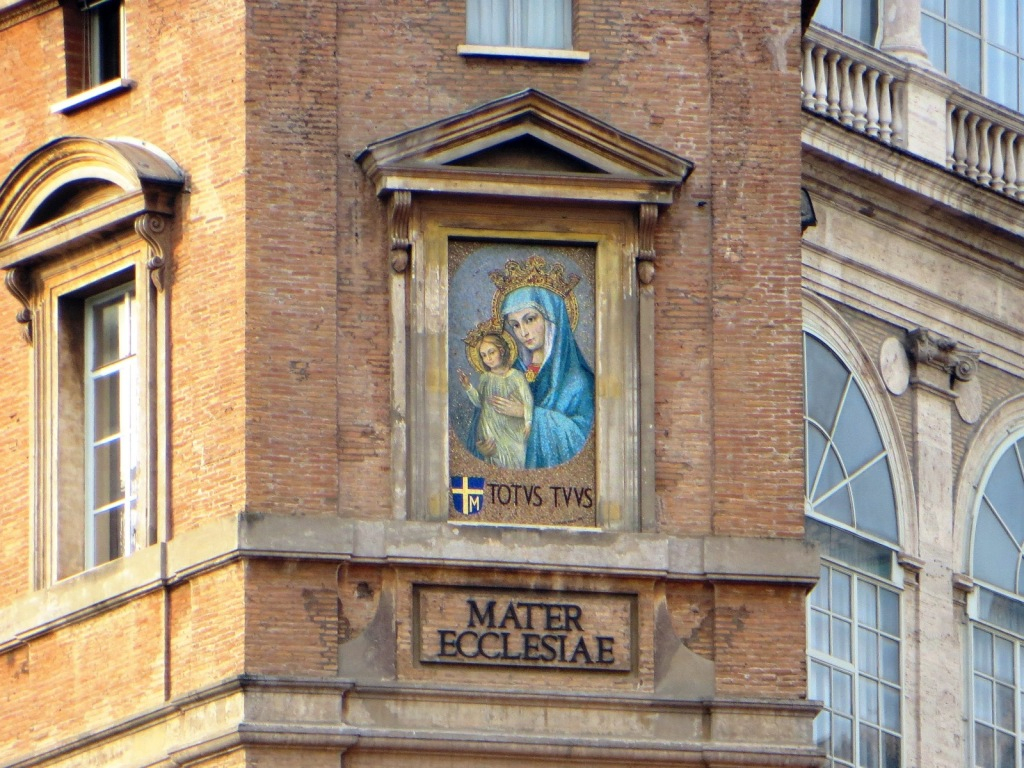 A kép egy hagyományos Mária-ábrázolás másolata: Az Istenszülő a gyermekkel, amit Madonna della colonna (oszlopos Madonna) néven is ismernek. Az eredeti a Szent Péter-bazilika helyén Nagy Konstantin császár által építtetett ókori templom egyik oszlopán volt látható. Miután a II. vatikáni zsinat végén, 1964 novemberében VI. Pál pápa bejelentette, hogy Máriát mint az Egyház Anyját is tiszteljük, ezt az ősi képet Mater Ecclesiae-nak nevezték el.
