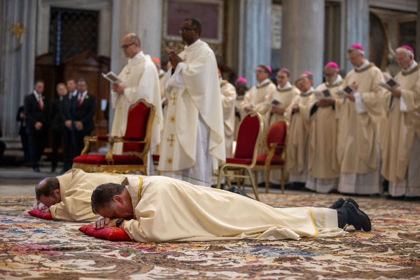 A homília után megkezdődött a szentelési szertartás, majd a Szentlélek segítségül hívása és a Mindenszentek litániája következett.