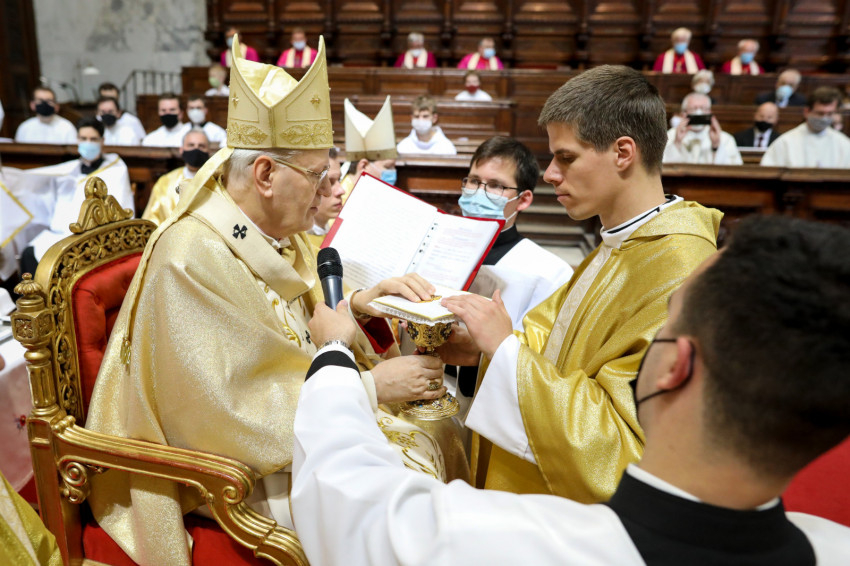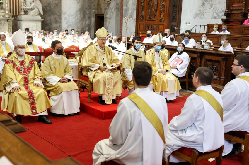 A mai evangéliumban ezután Jézus mondásait hallottuk arról, hogy bíznunk kell a gondviselésben. Ez a bátorítás ma különösen is időszerű, nekünk, papoknak pedig a szívünkhöz szól. Sokan vannak, akik valamilyen szempontból szépnek találják a papi küldetést, mégis félnek a hivatás felvállalásától. Félnek, mert esetleg úgy érzik, hogy túl gyengék vagy nem elég tökéletesek ahhoz. De gyakran tartanak tőle azért is, mert a katolicizmus jelenleg a világ legüldözötebb vallása, mert a papokra és a püspökökre rendkívüli nyomás nehezedik, mert itt is-ott is különleges fizikai erőszak vagy gyűlöletkeltés áldozataivá válnak. A világegyházban ma a korábbinál jóval többször fordul elő, hogy valaki, akit püspökségre jelölnek, nem vállalja a kinevezés elfogadását. Sokszor érezzük azt, hogy rendkívüli mértékben kiszolgáltatottak vagyunk a külső körülményeknek, a társadalmi feladatok változó és néha hullámzó elosztásának, a különféle elvárásoknak. Nem egyszer fordul elő, hogy egy plébános, aki szereti a templomát, a sok építkezésbe belefáradva úgy érzi, hogy nem ezért ment el papnak. Ugyanakkor