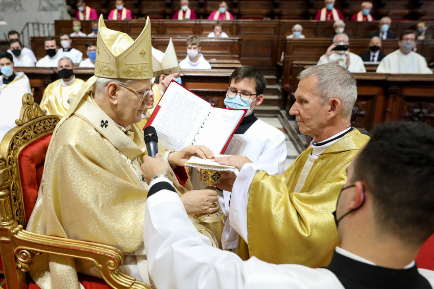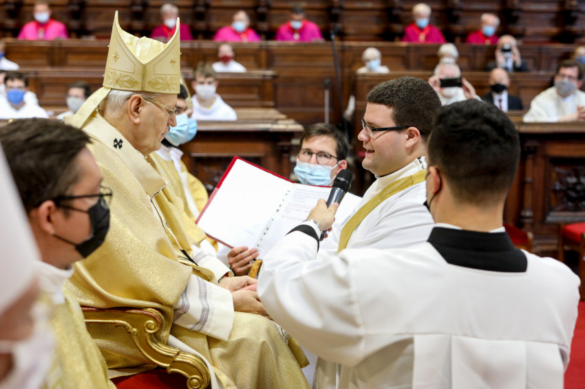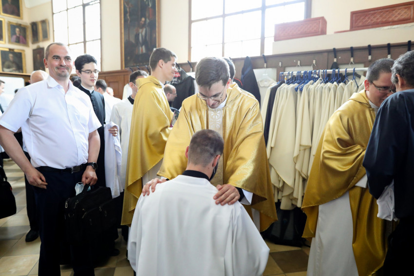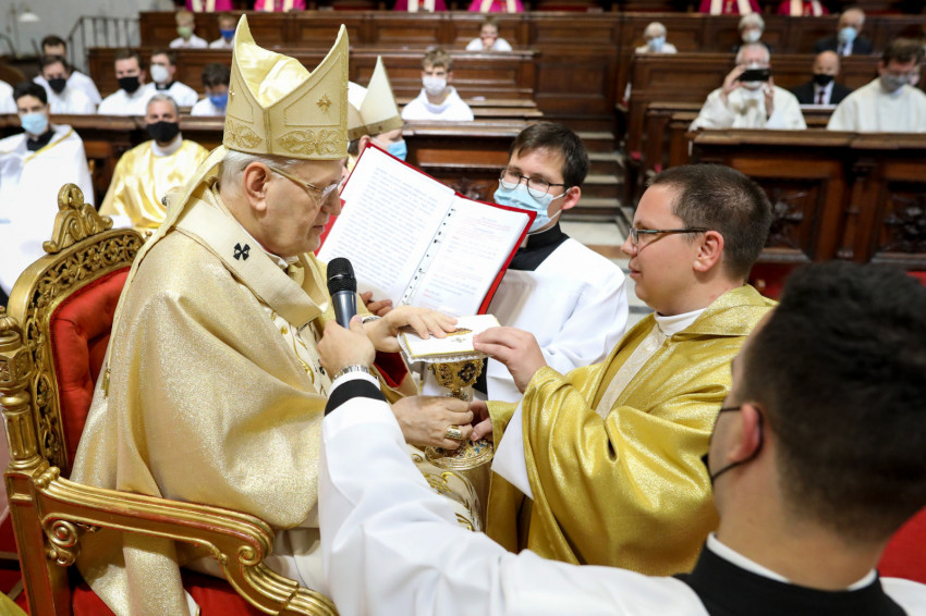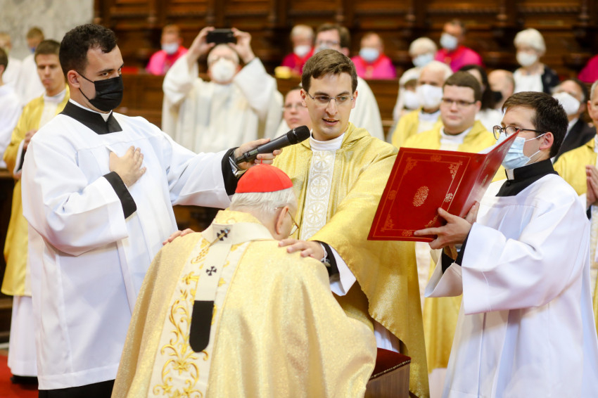 Az áldoztatás után a bíboros elsőként kért áldást az új papoktól, akik kezüket a vállára téve egyesével könyörögtek a főpásztorért.