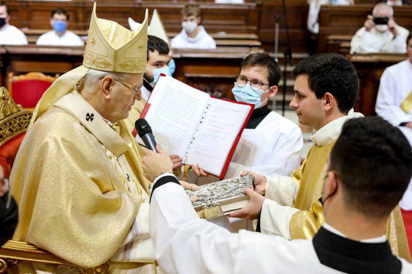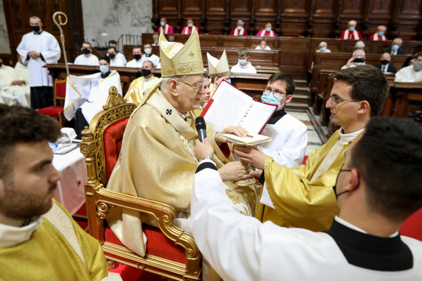A szentelés kérése és a szentelendők méltóságáról való meggyőződés után Erdő Péter elmondta homíliáját, melyet az alábbiakban teljes terjedelmében közlünk.
