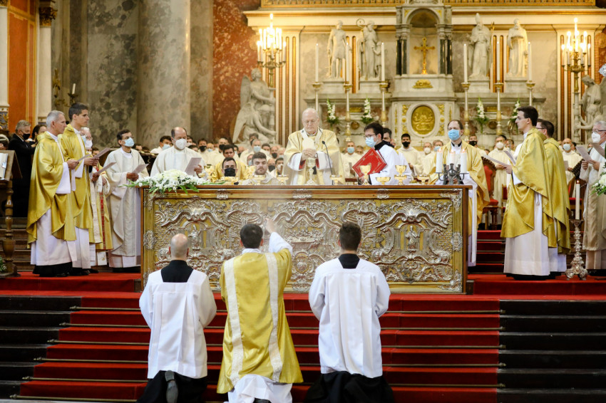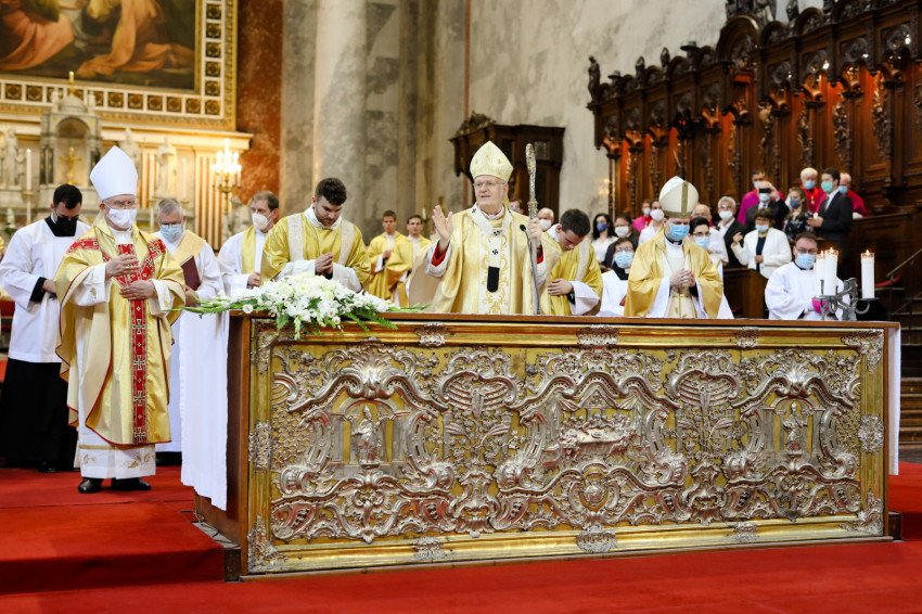 A mai szentmisében hálát adunk Istennek jubiláns paptestvéreink szolgálatáért, erőt kérünk mindannyiunk számára egy járvánnyal és lezárásokkal megterhelt esztendő után, de örömmel és reménységgel szenteljük fel egyházmegyénk új papjait és diakónusait.