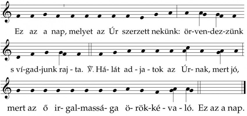 A húsvétvasárnapi graduáléban így szól: „Ez az a nap, melyet az Úr szerzett nekünk, örvendezzünk, s vigadjunk rajta. – Hálát adjatok az Úrnak, mert jó, mert az ő irgalmassága örökkévaló. – Ez az a nap, melyet az Úr szerzett nekünk, örvendezzünk, s vigadjunk rajta.”