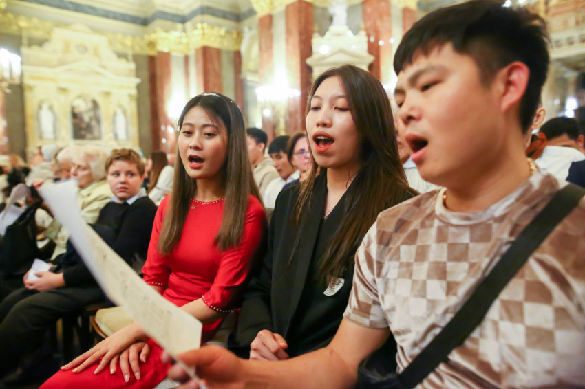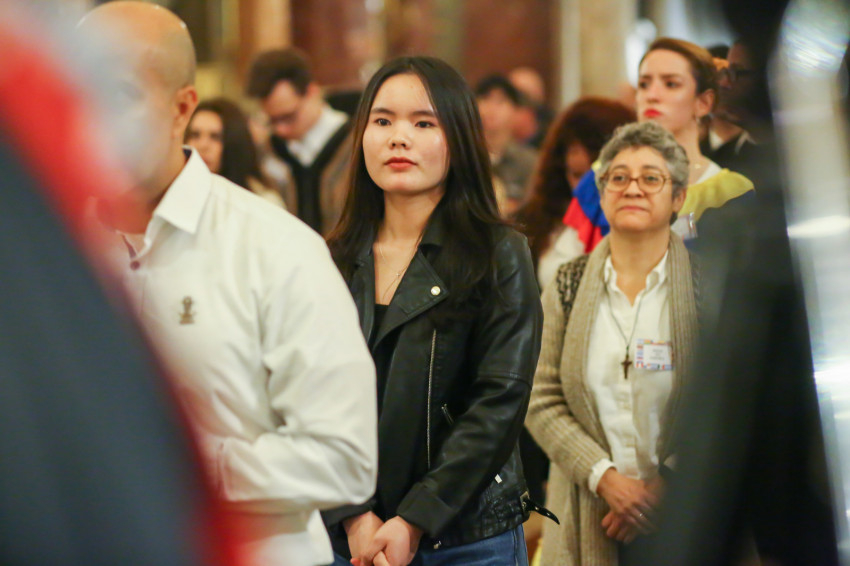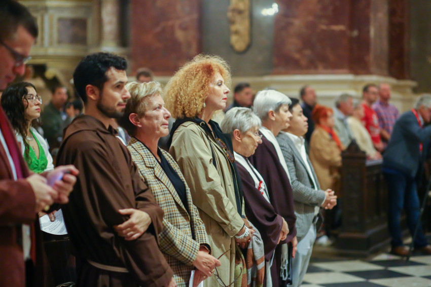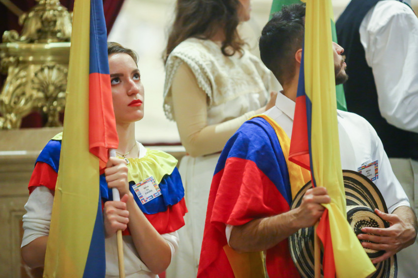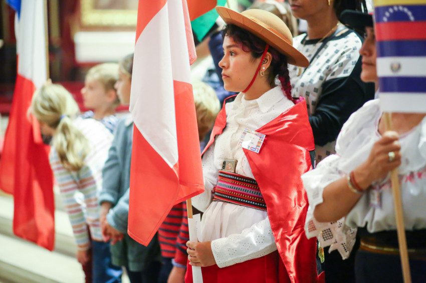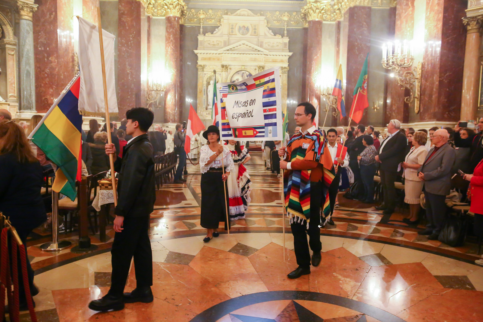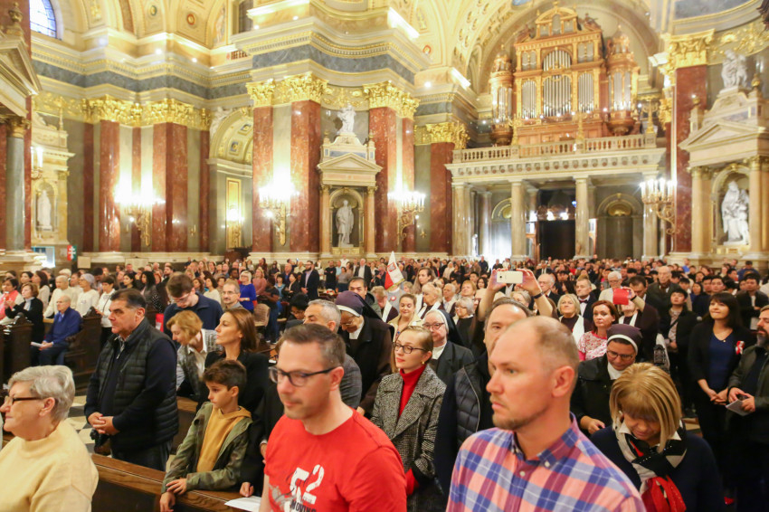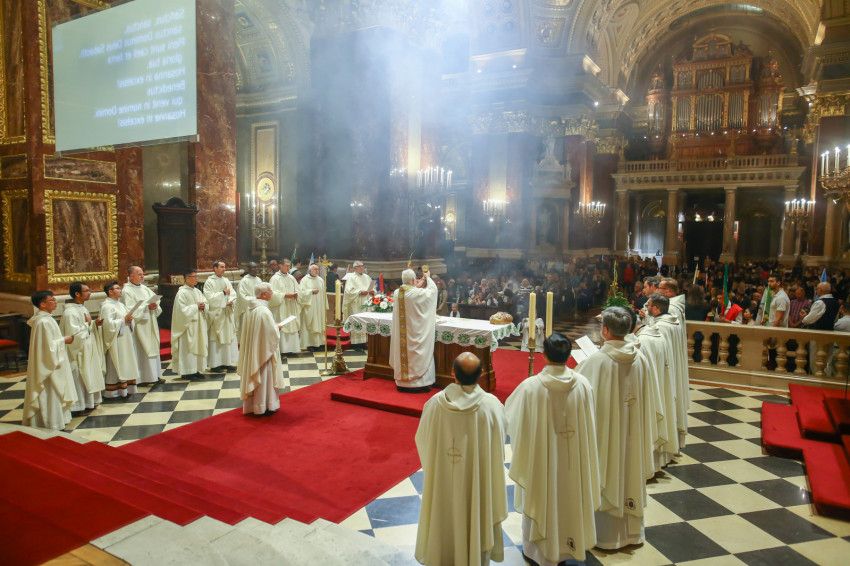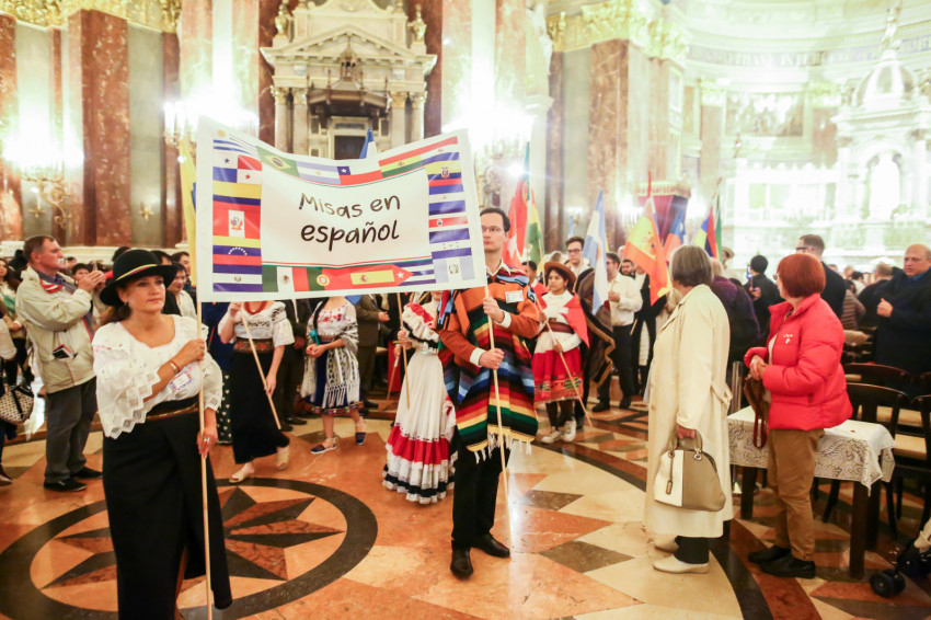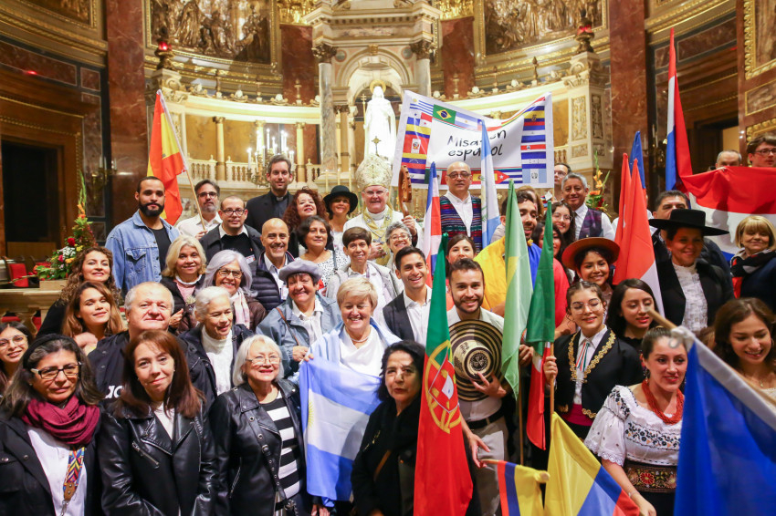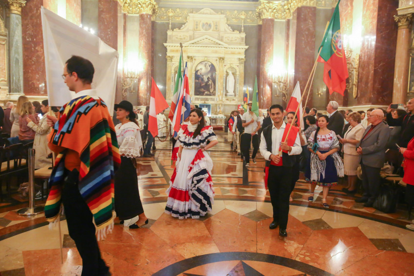 A Szent István-bazilikában hétről hétre igen sok náció képviselője megfordul, de a mostani színes forgatagot nem turisták alkották. Laudate omnes gentes (Dicsérje minden nemzet) – a jól ismert taizéi ének dallamára vonultak be hazájuk zászlajával a különböző népek képviselői, a spanyol nyelvűeknek még közös táblájuk is volt Misas en espanol (Spanyol nyelvű misék) felirattal.