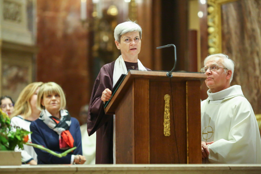 Cserháti Ferenc püspök megköszönte az egybegyűlteknek, hogy elfogadták Erdő Péter bíboros, prímás, az egyházmegye főpásztora meghívását, „hogy újra jelét adjuk az Egyház egyetemes jellegének”. „Más-más népviseletben, más nemzet képviseletében jöttek el a jelenlévők, de egy közösséget alkotunk” – hangsúlyozta. Ahogy az Efezusiakhoz írt levél is mondja: „Egy a Test és egy a Lélek, mint ahogy hivatástok is egy reményre szól. Egy az Úr, egy a hit, egy a keresztség. Egy az Isten, mindnyájunk Atyja, aki mindennek fölötte áll, mindent áthat és mindenben benne van.”