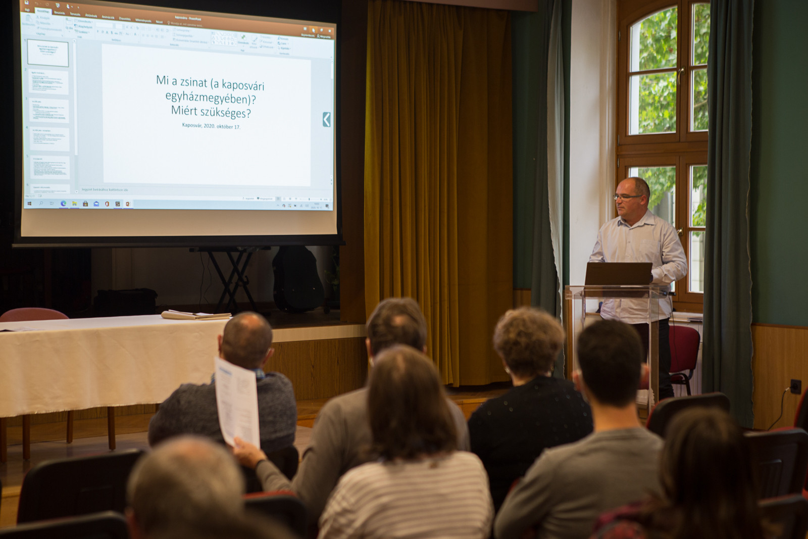Ezután Tomanek Péter püspöki irodaigazgató és Bárczi Miklós zsinati munkatárs mutatták be a zsinat hátterét és a tervezett folyamatot. Arra kérték a jelenlévőket, hogy a március végéig tartó előkészítő szakaszban lehetőleg minden plébánián és közösségben szervezzenek beszélgetést legalább 2-3 témát, területet érintve. Felajánlották, hogy amennyiben igény van rá, hívják meg ezekre az alkalmakra az érintett területek szakértőit. A tanácskozásokról készítsenek egy-egy rövid jegyzőkönyvet, és küldjék el a zsinat.kaposvar@gmail.com e-mail-címre vagy a zsinati irodába. Az így összegyűlt információk és javaslatok segítik a zsinati dokumentumok összeállítását.