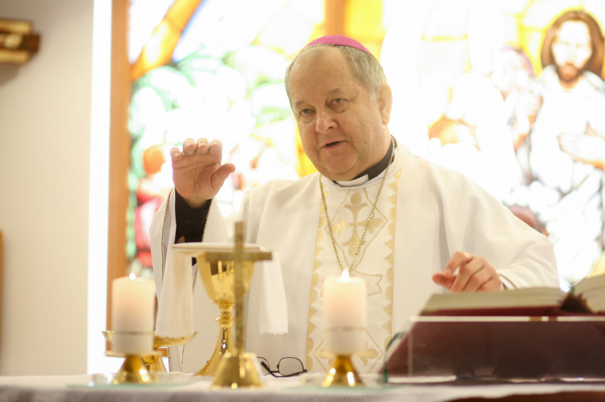 Bábel Balázs kalocsa-kecskeméti érsek, az Országos Egyházművészeti és Műemléki Tanács (OEMT) elnöke volt a szentmise főcelebránsa, aki szentbeszédében először megemlékezett azokról a már örökkévalóságba költözött egykori munkatársakról, akik az egyházművészetért dolgoztak földi életük során. A főpásztor a felolvasott evangéliumi rész kapcsán – mely a szőlőtőről és a szőlővesszőről szólt –, arról beszélt, hogy már e szakasz is művészetet ihlető, hiszen az anyagi világ felhasználásával többet, szebbet, a transzcendenst megjelenítő szépségét tudja megmutatni minden képi ábrázolása. Hány és hány alkotáson szerepel a dúsan termő szőlőtő szimbóluma, Jézus Krisztus ábrázolásaként, melyről leágazik a szőlővessző, a kereszténység. Az érsek hangsúlyozta, hogy a teremtett világban, a művészetben Isten szépségének lenyomatát találhatjuk meg. A vallásossághoz, az Isten kereséséhez tehát mindig hozzátartozott a művészet, melynek a liturgiára kell összpontosulnia, tükröznie kell a hit tisztaságát. A művészet tehát nagy alázatosságot igényel attól is, aki létrehozza, attól is, aki megőrzi, nyilvántartja, restaurálja – zárta szentbeszédét a főpásztor.