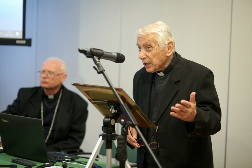 Farkas Attila atya művészettörténész, aki hosszú időn át az OEMT titkára, az OKGYK vezetője volt, előadásában arról beszélt, hogy mindig feladatának érezte a magyar katolikus kultúra megőrzését. Felidézte, hogy az ateista hatalom próbálta felszámolni a katolikus életet az országban, ennek ellenére azt sikerült megőrizni. Visszaemlékezésében szólt arról, hogy már 1949-ben elkezdődött az állam részéről a műtárgyak felmérése, a legértékesebb tárgyak állami védettség alá helyezése. Tették ezt azért is, mert féltek, hogy az egyházmegyék külföldön értékesítik a birtokukban lévő műtárgyakat. A püspökségeken, plébániákon talált műtárgyakat az illetékes múzeumok saját leltárukba vették – műtárgyvédelem címén. A kölcsönös bizalmatlanság enyhülésével az állam és az Egyház között megegyezés jött létre, s az állam egyházi kézbe adta a műtárgyak, történelmi dokumentumok nyilvántartásba vételét. Így jött létre 1969-ben könyvtári, levéltári és múzeumi szakterületen az Országos Katolikus Gyűjteményi Központ. Az OKGYK azonban igénybe vette az állami múzeumok szakembereinek segítségét, az ott dolgozók szaktudását. Így sikerült megkezdeni a templomokban található tárgyak, oltárok, bútorok feldolgozását, s ezek az összesítések a leltári listákon kívül fontos történelmi dokumentumokká is váltak. A rendszerváltozás után, 1993-ban a Magyar Katolikus Püspöki Konferencia határozatával önálló jogi személlyé vált az OKGYK. Ezt követően a felmért műtárgyakról adatbázis készült, mely az egyes egyházmegyékben főpásztori engedéllyel kutathatóvá, megismerhetővé vált. E feldolgozás segítette az egyházmegyei kincstárak kialakulását is.