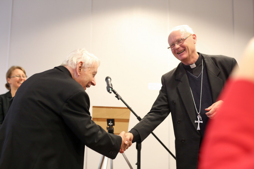 A szentmisét követően Varga Lajos segédpüspök köszöntötte a megjelenteket. Mint mondta, az OKGYK létrejötte az Egyház kultúrát teremtő tevékenységének köszönhető. Az államosítás után az állam számolt azzal, hogy nagyon sok kulturális érték maradt egyházi tulajdonban, melyeket nemzeti kincsnek tekintett, szorgalmazta megőrzésüket, tudományos felhasználásukat. Az intézményt a püspöki konferencia alapította. Feladatát a könyvtárak, levéltárak és múzeumi gyűjtemények területén határozta meg, hiszen a kultúrával és a társadalommal való érintkezés írott emlékeit könyvtárak és levéltárak, tárgyait múzeumok őrzik. Végül az OKGYK igazgatója köszönetet mondott mindazoknak, akik az ötven esztendő során az intézményben dolgoztak, illetve munkájukat segítették.