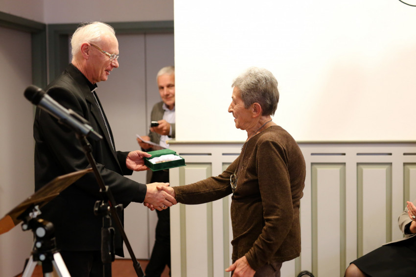 A köszöntők, előadások, visszaemlékezések után került sor a díjak átadására. Mint Varga Lajos püspök, igazgató mondta, azok kapják a kitüntetést, akik az OKGYK vezetésében, illetve hosszú időn át a műtárgyfelmérés nehéz és fáradságos munkájában vettek részt. Elismerésben részesült Farkas Attila, Lovag Zsuzsa, T. Németh Annamária és Kolba Judit.