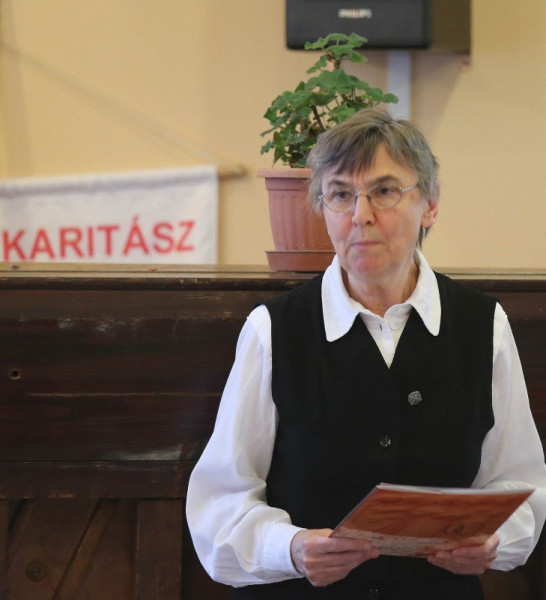 Ezután Géczy M. Erzsébet nővér, a Boldogassszony Iskolanővérek rendjének tagja Szent Erzsébet és az irgalmasság éve címmel tartott előadást, számtalan középkori ábrázolást is bemutatva a szentről, s közben arra hívta a résztvevőket, hogy együtt imádkozzanak a Szent Erzsébet-zsolozsmából. Az embereknek nemcsak anyagiakra, hanem jó szóra is szükségük van, vezette be előadását a Svetits Intézet tanára, aki ezt naponta megtapasztalja a mintegy ezer diák körében. Árpád-házi Szent Erzsébet, világszerte ismert szentünk már gyermekkorától a szegények felé fordult, s viszontagságokkal teli rövid élete során mindig az imádságból merítette az erőt a türelemhez, a szenvedés, a megaláztatás elviseléséhez, de irgalmas cselekedetekben gazdag életéhez is. „Egész szeretetem az Istené” – vallotta. Élete azt példázza, hogy szeretni csak izzó szenvedéllyel lehet. Krisztussal együtt tenni a jót – ez lehet a Karitász munkatársainak is a dolga – zárta előadását Géczy M. Erzsébet iskolanővér.