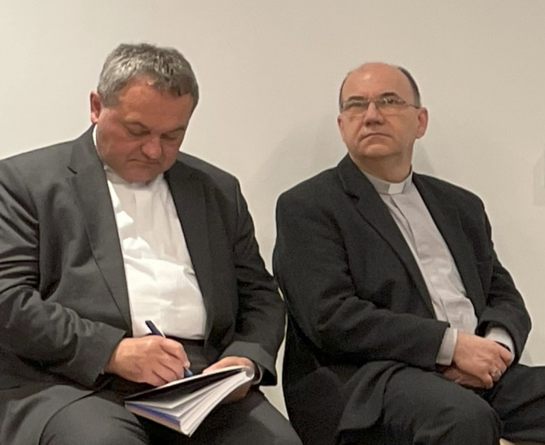 Felföldi Lászlót a látogatásra elkísérte Máger Róbert, a pécsi püspöki iroda igazgatója, Koósz Roland oktatási irodavezető, Sipos Edit hitoktatási munkatárs, Kapitányné Légrádi Éva pasztorális munkatárs, Merényi Andrea oktatási munkatárs és Papp Attila iskolaigazgató. Vácon találkoztak a Váci Egyházmegyei Katolikus Iskolák Főhatóságának munkatársaival, szakembereivel. A megbeszélésen részt vett Marton Zsolt váci megyéspüspök is, valamint a Váci Egyházmegye pasztorális és oktatási intézményei részéről Csáki Tibor, az EKIF hitéleti igazgatója, Paszternák Tamás pasztorális helynök és Tornay Gábor hitoktatási igazgató, valamint Gloviczki Zoltán, az Apor Vilmos Katolikus Főiskola rektora, Uzsalyné Pécsi Rita pedagógiai főtanácsadó, Hortobágyiné Nagy Ágnes, a Családi Életre Nevelés (CSÉN) program alapítója és Bíró Délia pszichológus.