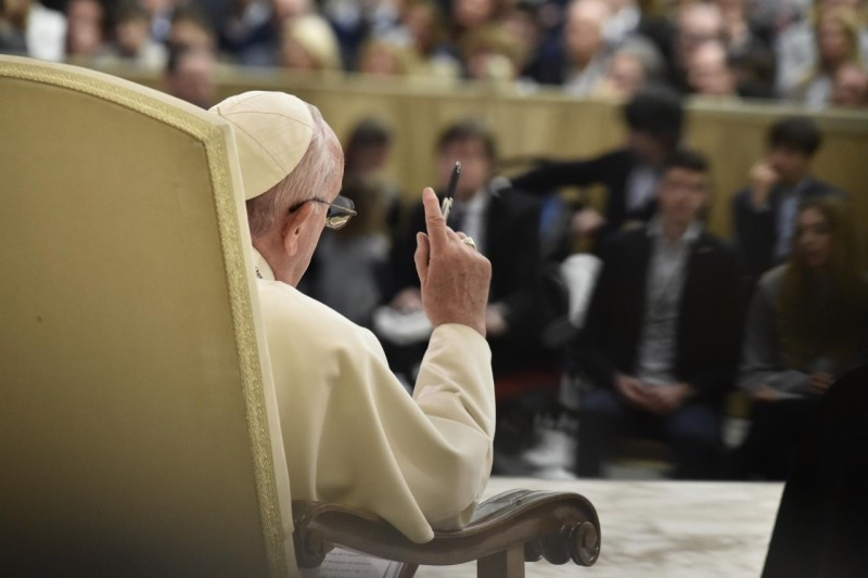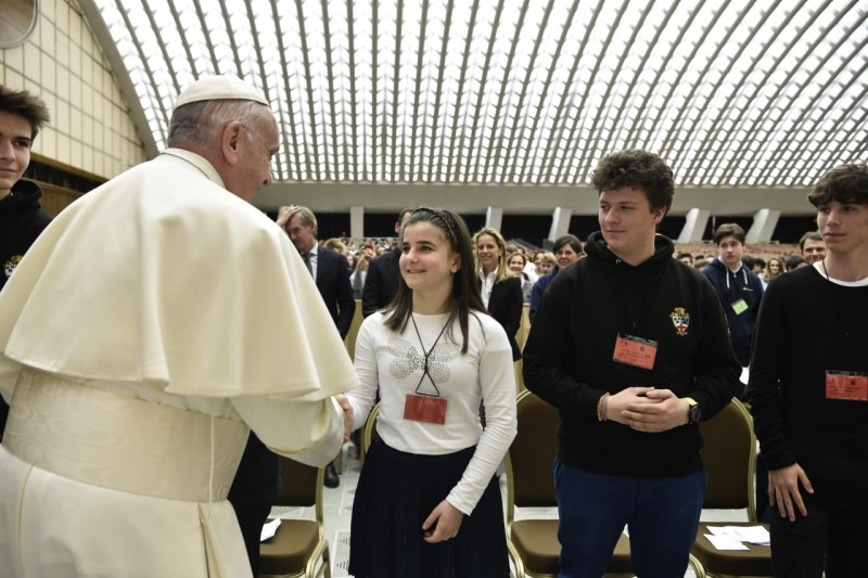 A Szentatya kötetlenül válaszolt a diákok kérdéseire; többek között olyan témák kerültek szóba, mint a felelősség, a hit, az igazságosság és a munka.